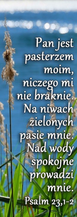 Zakładka laminowana, wzór kwiatowy, wielkość: 14x5 cm, werset: Łaskawy i miłosierny jest Pan, Nierychły do gniewu i pełen łaski. Dobry jest Pan dla wszystkich, A miłosierdzie jego jest nad wszystkimi jego dziełami. Psalm 145,8-9